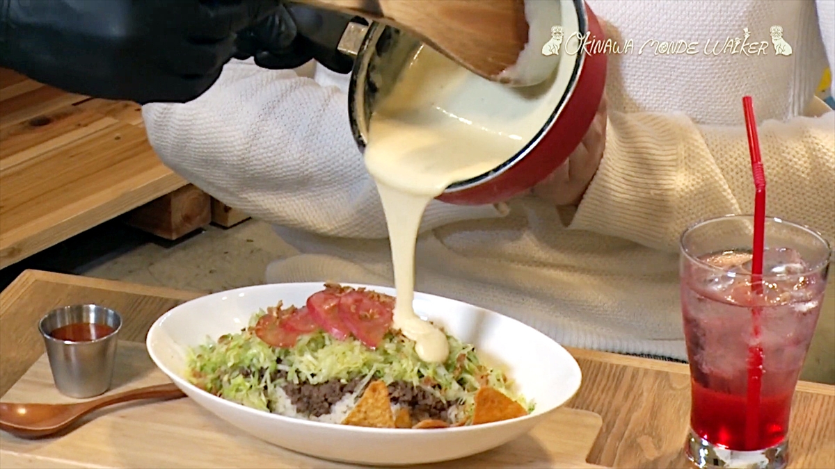 Taco rice is a local Okinawan dish made by sprinkling meat sauce on rice.