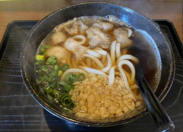 - かすうどんの香ばしさがクセになる