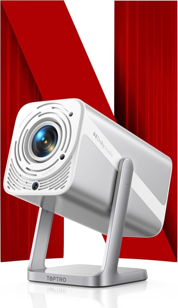TOPTROは、世界30カ国以上で販売されている家庭用プロジェクターブランド。その中でも「TP1」は、Netflix公式認証を受けた最新ハイエンドモデルです。 Amazonのレビュー評価は**4.6/5.0(441件中)**と高評価。「Amazonおすすめ」や「ホームシアターラン...