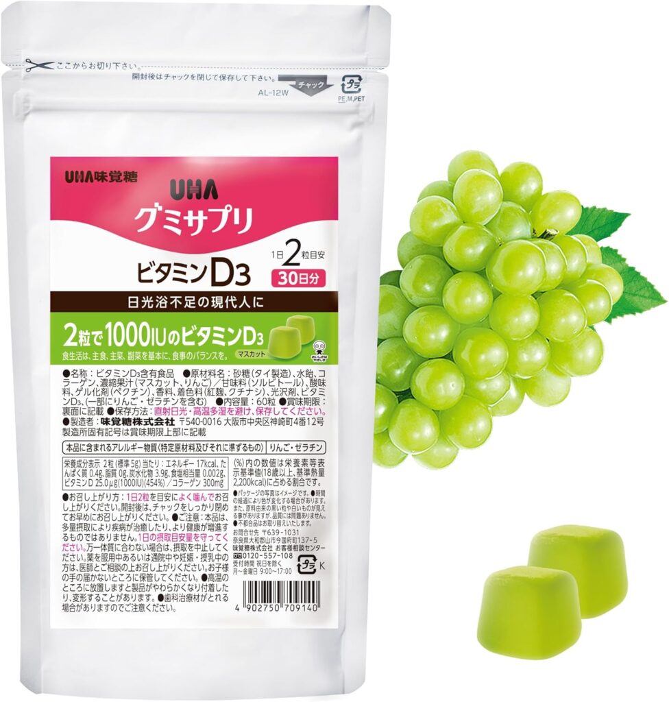 【UHA味覚糖 グミサプリ ビタミンD3】1日2粒でしっかり摂取!マスカット味で美味