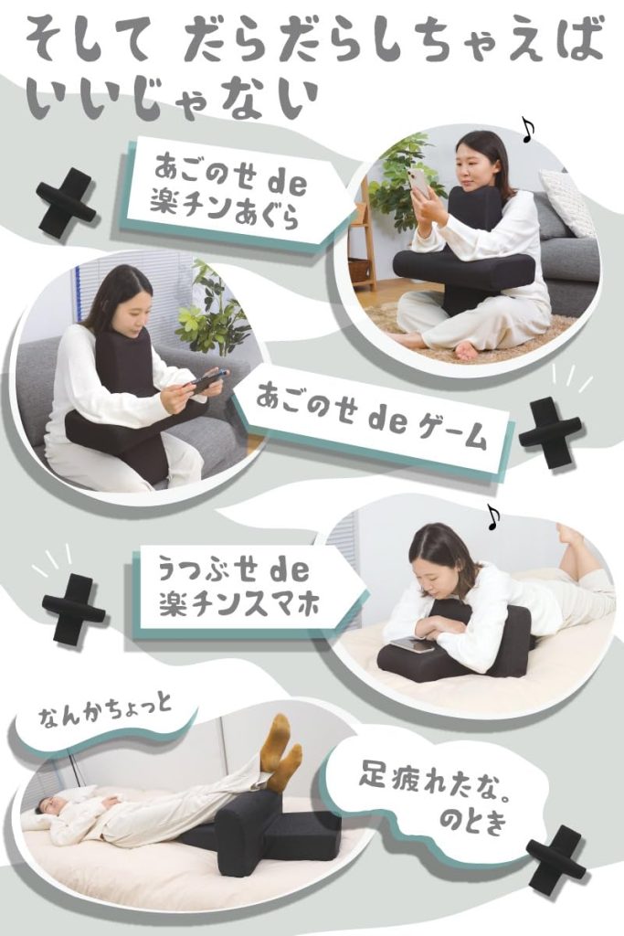 このあごのせクッションは、ゲームやスマホ操作だけでなく、読書やPC作業にも最適です。例えば、デスクワークや勉強の合間に使うことで、肩こりの予防や姿勢改善にもつながります。また、リラックスタイムにも最適で、家でゆったりとくつろぐときにも役立ちます。
