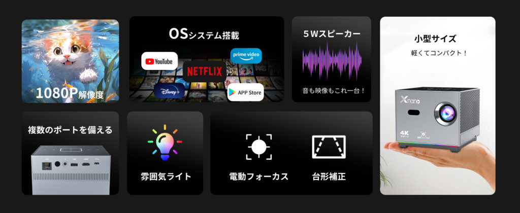 今回は、小型&高性能プロジェクター「XNANO X3」をご紹介します。NetflixやYouTube、Prime Videoを本体に内蔵し、さらにRGBライト搭載で、部屋をオシャレに演出できる一台です。